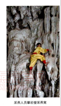 目前,市面上销售燕窝分为两种,洞燕与屋燕,其中以洞燕价格昂贵,采摘困难。由于金丝燕筑巢总是筑在万无一失的高险处,攀岩壁采燕窝是十分艰苦而又危险的劳作,采集者背负一囊,攀登于悬崖陡壁之间,犹如猴子一般地踏着空穴,扒着缝隙,四处搜寻着采集物。他们身轻如燕,胆大如鹰,有时手足呈“大”字形,附着于岩壁之上;有时则借助绳索如荡秋千于峡谷之中。一举一动,扣人心弦,万一失足坠入深壑,就要粉身碎骨了。